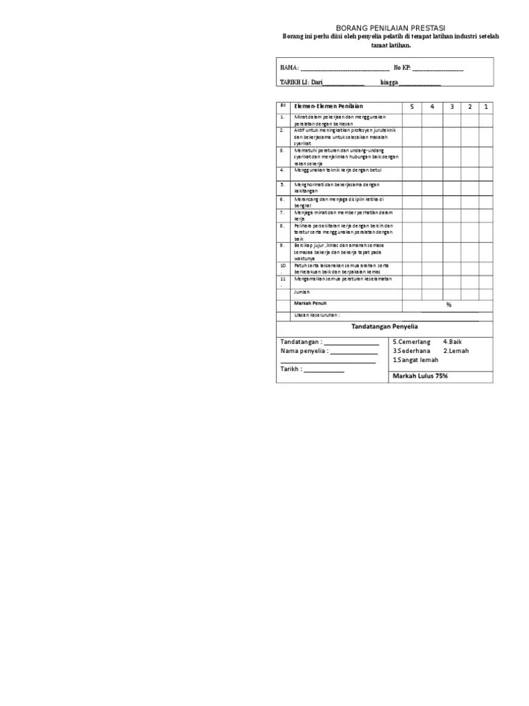 Contoh borang penilaian prestasi yang boleh dijalankan ke atas pekerja.